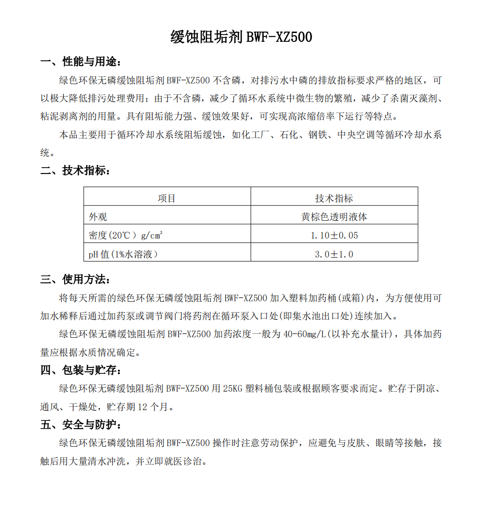 缓蚀阻垢剂BWF-XZ500